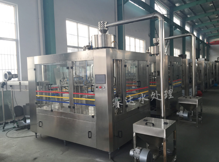 本公司生產的CGF18/18/6型沖洗、灌裝、封蓋機,是在引進、消化吸收國內外同類產品的基礎上,結合了本公司多年生產經驗后開發的新產品。該機組集灌裝、封口于一體,由一個傳動電機傳動。具有自動化程度高、結構緊湊、外形美觀、操作維護方便、安全可靠、生產能力連續可調等優點,是目前國內較為理想的礦泉水、純凈水、飲料灌裝生產設備。