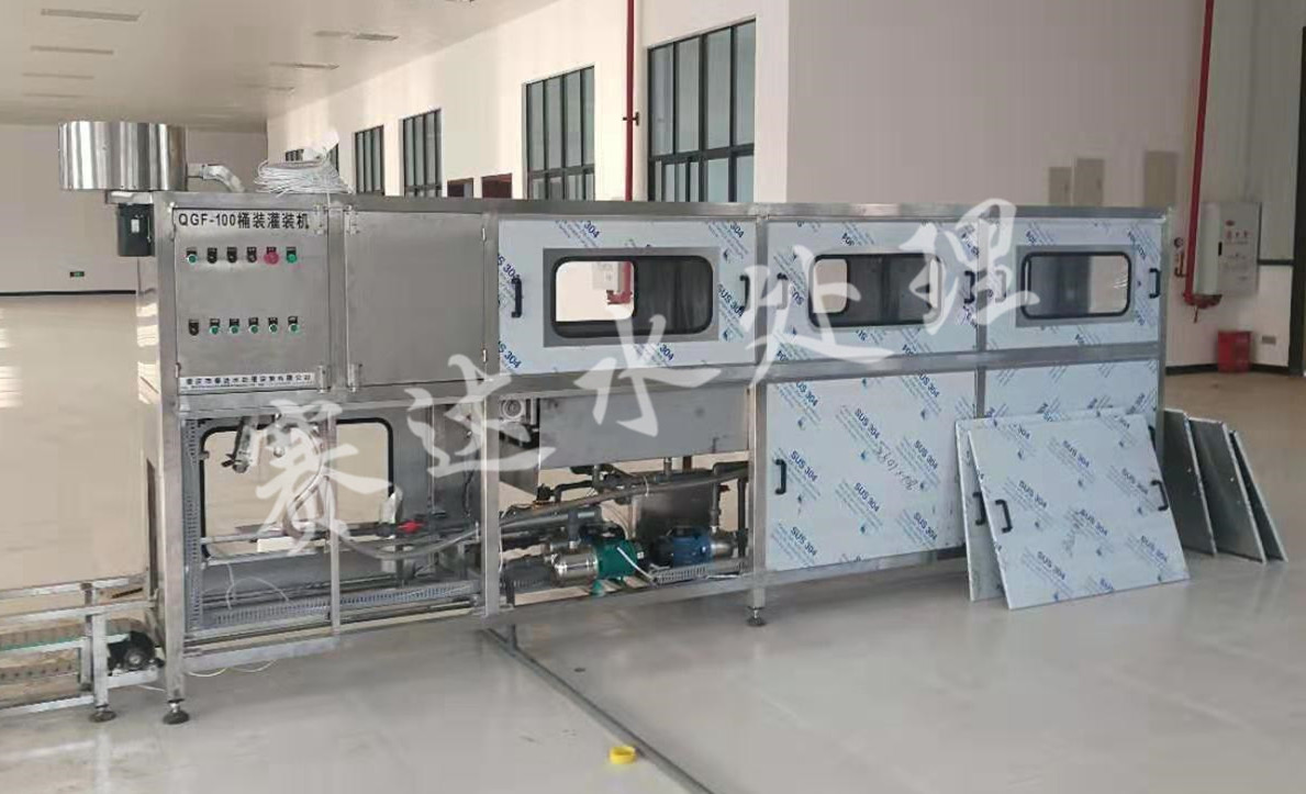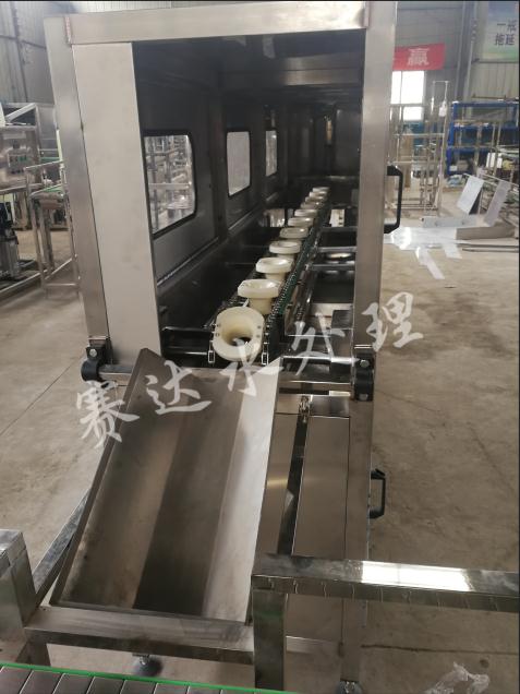 桶裝水灌裝機(jī)集消毒、沖洗、灌裝、封蓋于一體,其沖洗工位為10道:自動上桶、兩道熱堿液噴洗、一道滴干、兩道回水沖洗、兩道消毒液噴洗、兩道成品水噴洗、一道滴干,下桶灌裝,完全滿足《飲料生產(chǎn)許可審查細(xì)則(2017版》要求。